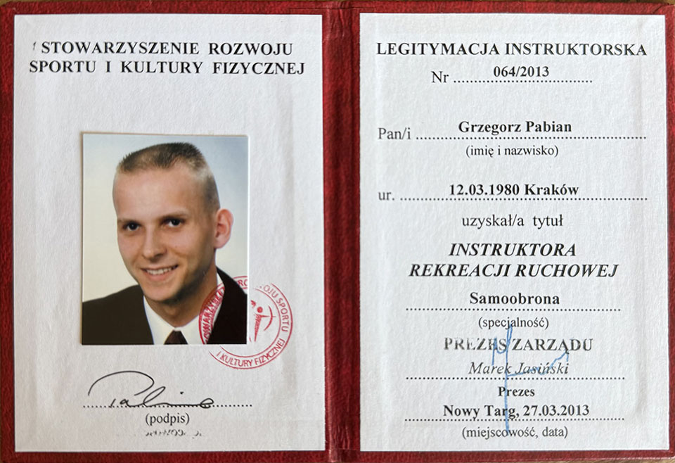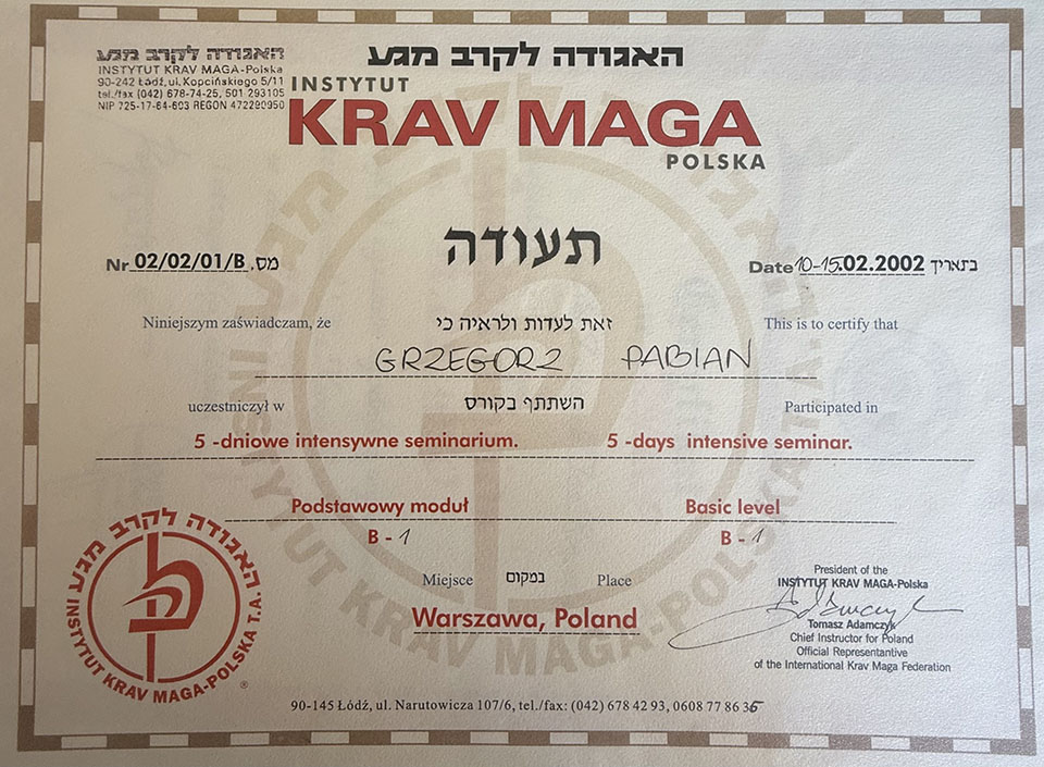 Kierując się pasją oraz pragnieniem dzielenia się cenną wiedzą, założył firmę „STRATEGIA SAMOOBRONY GRZEGORZ PABIAN” – stworzoną po to, aby uczyć, jak pewnie i skutecznie zadbać o swoje bezpieczeństwo.