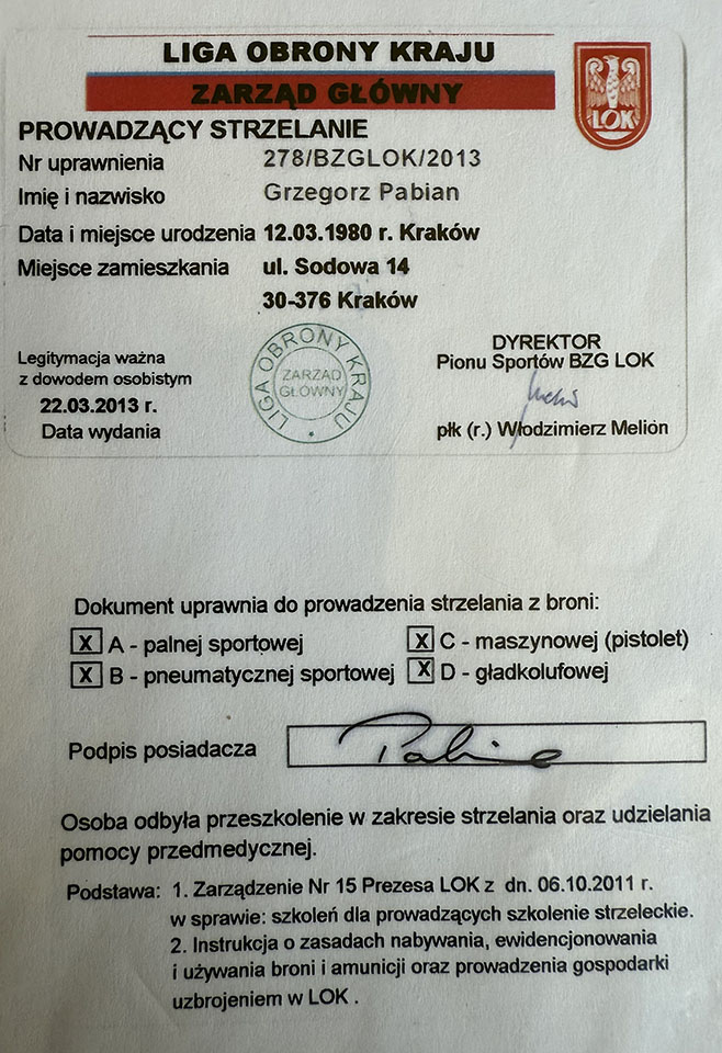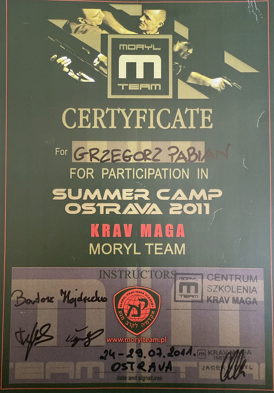 Jest byłym uczestnikiem programów „SELEKCJA”, oraz prowadzącym szkolenia I i II edycji ogólnopolskiego projektu „Samoobrona Kobiet” pod patronatem MON. Posiada również uprawnienia do prowadzenia zajęć strzeleckich, co daje mu jeszcze szerszą perspektywę na kwestie bezpieczeństwa osobistego.