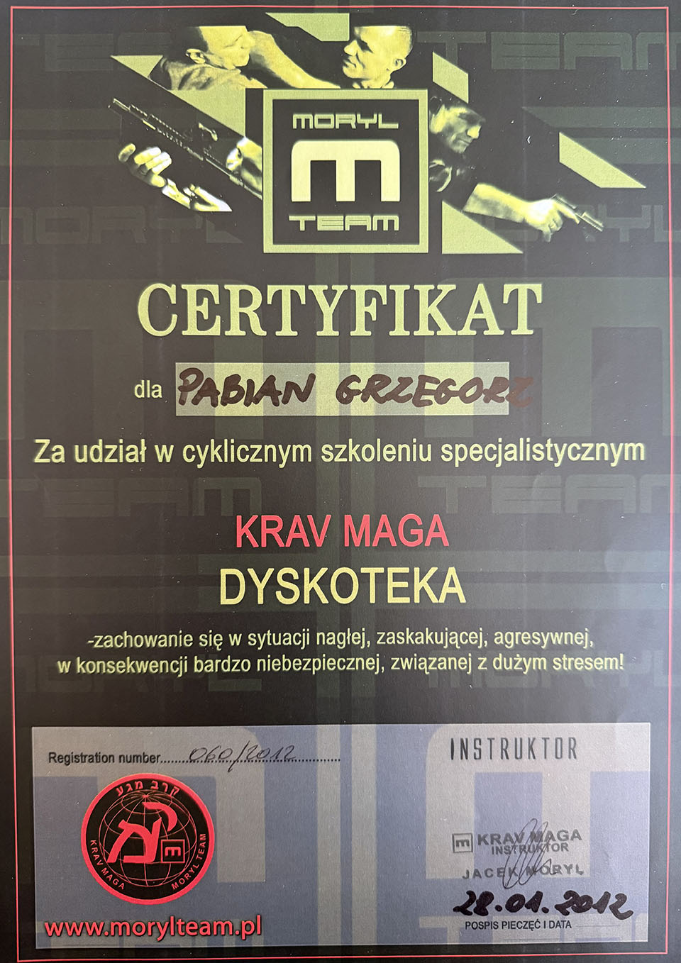 Opublikowano naTrustindex sprawdza, czy pierwotnym źródłem recenzji jest Google. Polecam wszystkim którzy chcą uczyć się dobrego i pozytywnego kontaktu oraz świadomości obrony własnej i innych osób.Pan Grzegorz w pełni profesjonalnie podejście do swojego zawodu napewno będziemy brać udział w dalszych zajęciach z przyjemnością 🙂🙂🙂Opublikowano naTrustindex sprawdza, czy pierwotnym źródłem recenzji jest Google. Plecam strategię samoobrony u Grześka Pabiana, konkretny gość pokaże co i jak i nauczy jak się bronić, do tego super pozytywna osoba. Polecam👍💪Opublikowano naTrustindex sprawdza, czy pierwotnym źródłem recenzji jest Google. Super trener oraz człowiek,dzieci zachwycone .Dzięki ćwiczeniom nabrały pewności siebie i kondycja .Z całego serducha polecam .Warto 😉Opublikowano naTrustindex sprawdza, czy pierwotnym źródłem recenzji jest Google. Z całego serca polecam te zajęcia z samoobrony! Przyszłam z ciekawości, a wyszłam z poczuciem siły i pewności siebie. Dzięki praktycznym ćwiczeniom wiem, jak się zachować w sytuacji zagrożenia — wcześniej pewnie bym zamarła, dziś mam konkretne reakcje w głowie i ciele. Trener tłumaczy wszystko jasno, tworzy świetną atmosferę i daje poczucie bezpieczeństwa już od pierwszych minut. Naprawdę warto — polecam każdej kobiecieni nie tylko.Opublikowano naTrustindex sprawdza, czy pierwotnym źródłem recenzji jest Google. Bardzo polecamy zajęcia Krav Maga dla dzieci i młodzieży. Super kompetentny i zaangażowany prowadzący. Zajęcia rozwijają i uczą radzenia sobie w trudnych stacjach. Synowie mega zadowoleni!!Opublikowano naTrustindex sprawdza, czy pierwotnym źródłem recenzji jest Google. Kiedy pytałam syna jak było na zajęciach Kravmagi slyszałam " czadowo" , wiec to chyba najlepsza ocena dla Pana Grzegorza . Bardzo dobre podejście do dzieci i widać z jaką pasją i cieriwoscią prowadzone sa zajęcia. Różne grupy wiekowe a jednak pan Grzegorz wie jak dotrzeć do każdego . Polecam z całego serduchaOpublikowano naTrustindex sprawdza, czy pierwotnym źródłem recenzji jest Google. Zajęcia prowadzone profesjonalnie i z pełnym zaangażowaniem. Każde ćwiczenie poprzedza krótkie wprowadzenie wraz z wyjaśnieniem techniki skutecznej defensywy lub ataku wyprzedzającego. W trakcie ćwiczeń prowadzący zajęcia na bieżąco weryfikuje poprawność wykonywanych ćwiczeń i cierpliwie odpowiada na pytania. Zdecydowanie polecam.